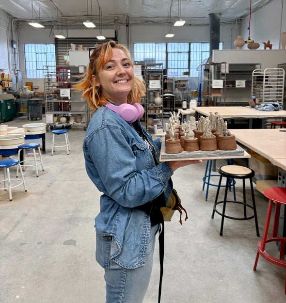 is a UK born, US based ceramic artist whose practice explores material, narrative, human touch, colour and play. Laura studied ceramics at the University of Wisconsin - Madison and has worked as a ceramics artist and educator for the last decade. They’ve taught at several art centers nationally including; Lillstreet Art Center, Adamah Art Studios, Made Chicago, The Digs Chicago. Laura co-founded the Chicago Ceramics Crawl after teaching at many of Chicago’s community art centers. The tour aims to connect and celebrate the city’s clay community.